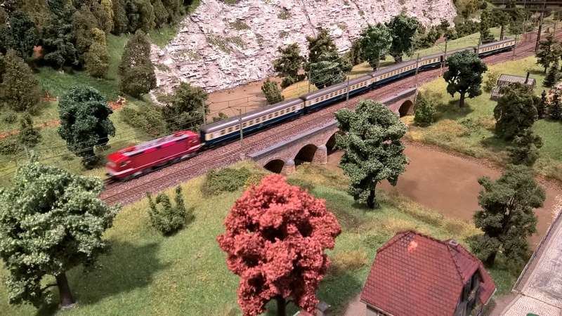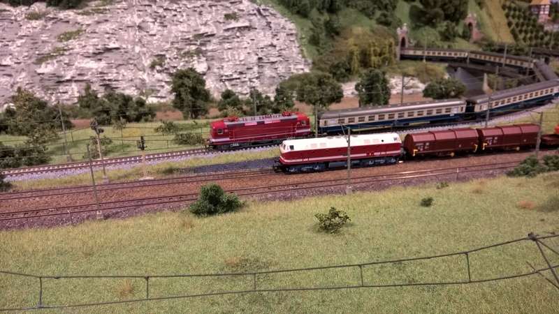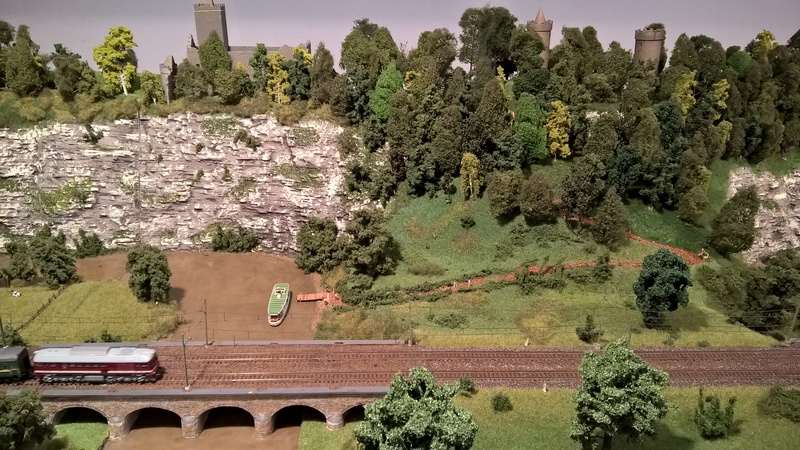 Die Größe beträgt 8,00 m x 1,60 m. Die Anlage besteht aus vier Segmenten. Der gesamte Fahrbetrieb wird vollständig digital durchgeführt und über PC gesteuert. Die Steuerung erlaubt sowohl manuelle als auch automatische Fahrweise. Es sind vornehmlich Fahrzeuge der Epoche IV im Einsatz. Schauen Sie sich diese ruhig genau an. Der Digitalbetrieb ermöglicht einige optische Effekte, die dank immer kleiner werdender Leuchtdioden auch in dieser Nenngröße für überraschende Wirkung sorgen.